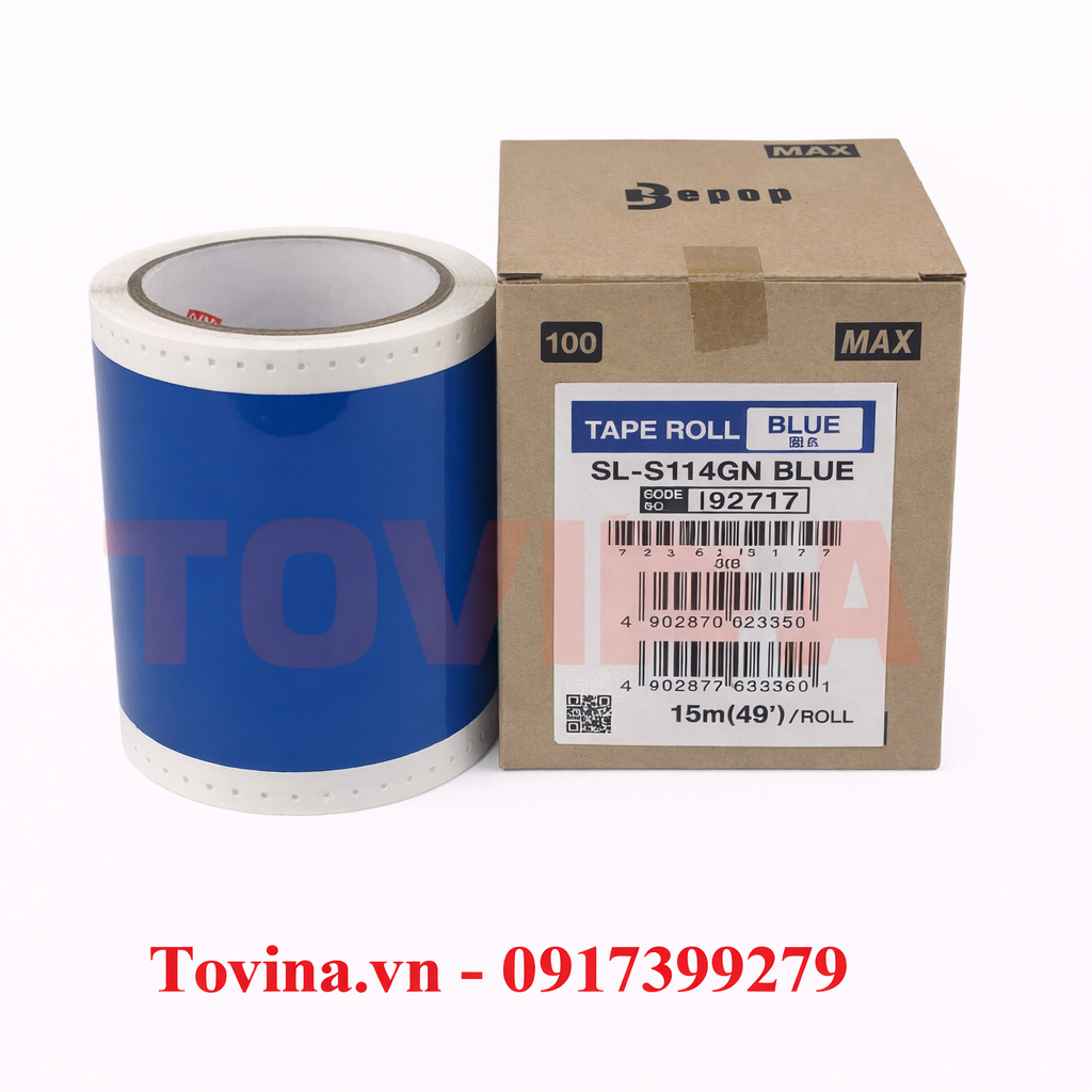 Depiction: SL-S114GN (SLS114GN) Ofarol super adhesive label, Blue color, size 110mm (width) x 10m (length)
