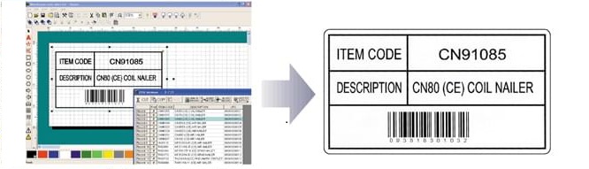 Thông tin từ cơ sở dữ liệu được lưu ở định dạng CSV, có thể được liên kết trực tiếp đến thiết kế nhãn của bạn. Liên kết dữ liệu thuận tiện cho việc tạo ra các nhãn sản phẩm có nhiều thông số thay đổi trên một nhãn.