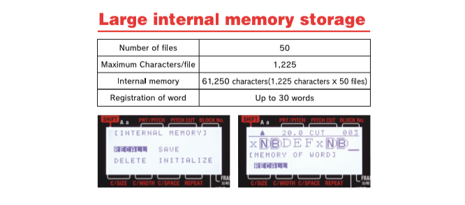 - LM-550E có thể lưu trữ tới 61,250 ký tự trong bộ nhớ. Trung bình 1,225 ký tự/file.